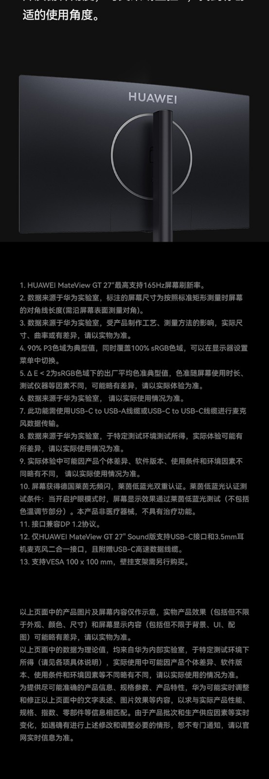 參數(shù) [品牌] 華為 [型號] 華為MateViewGT [單位] 臺