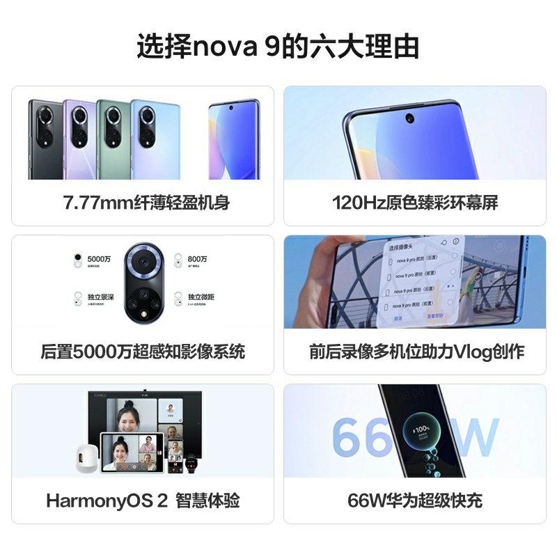 HUAWEI/華為 nova 9 66W快充后置5000萬(wàn)超感知影像華為新款智能手機(jī)華為官方旗艦店學(xué)生機(jī) 普羅旺斯