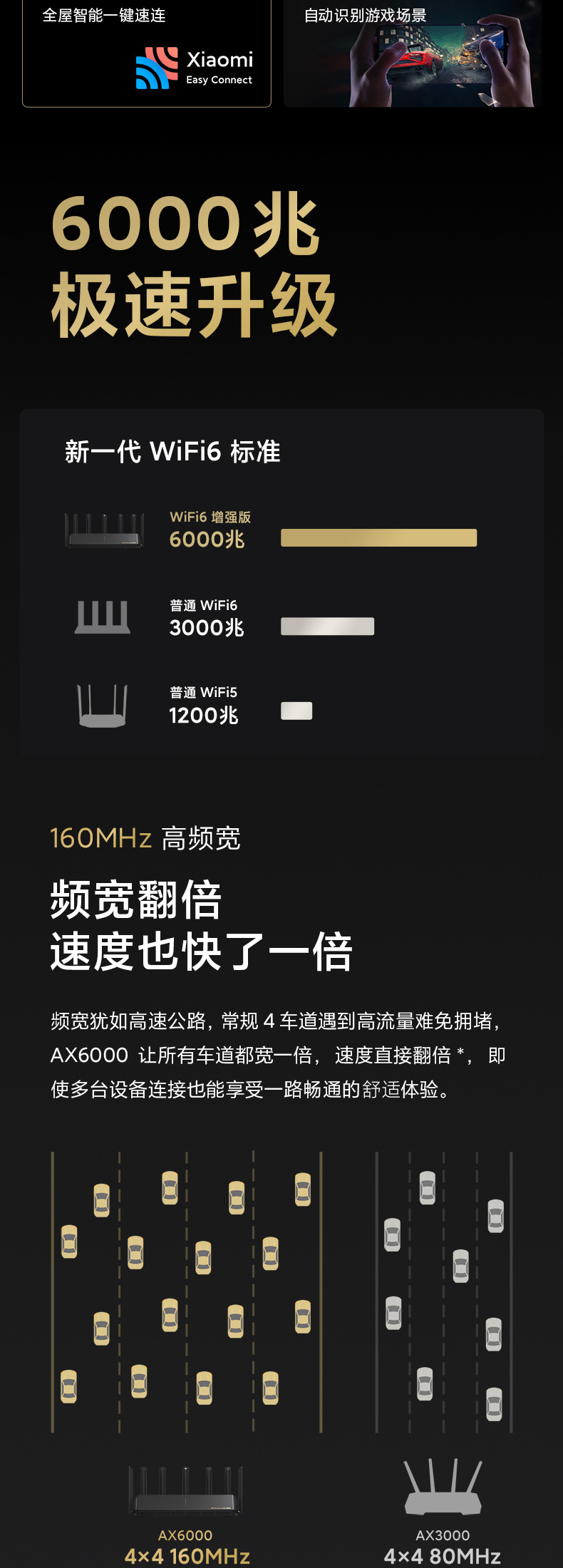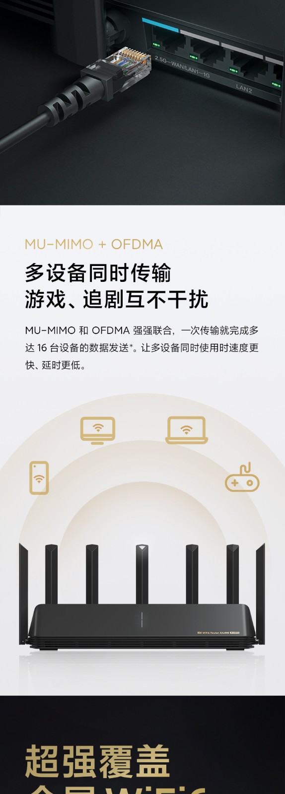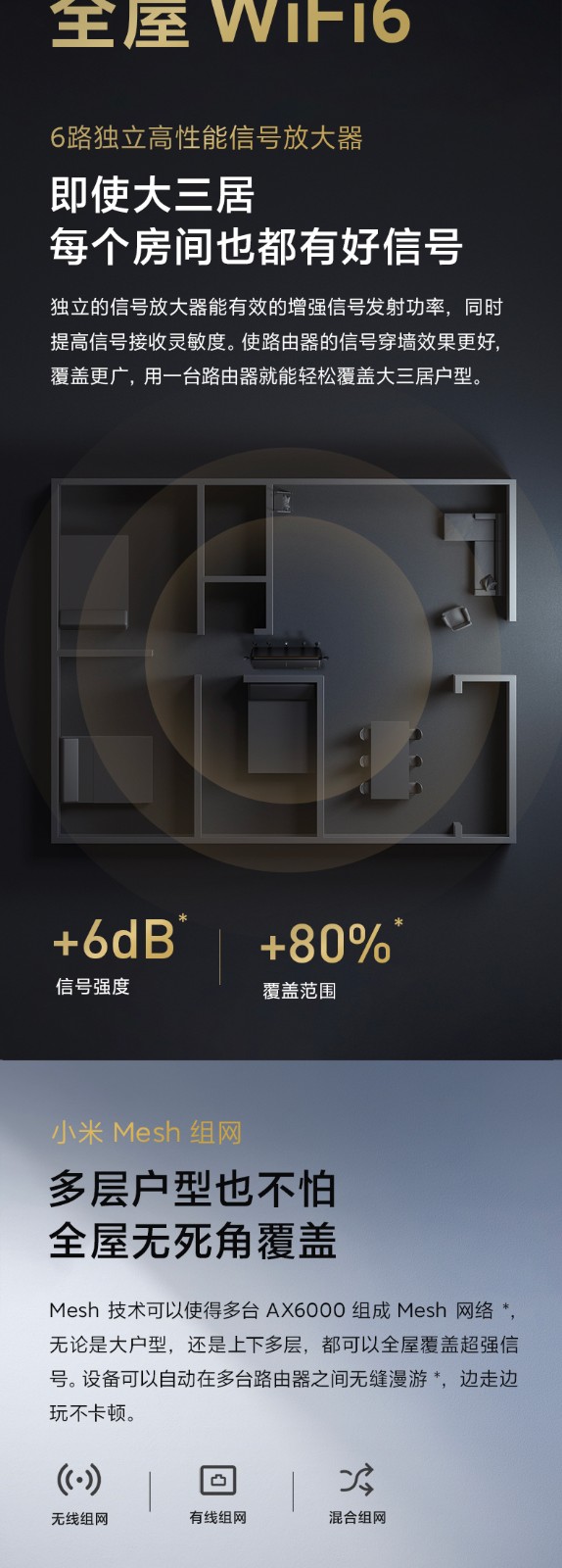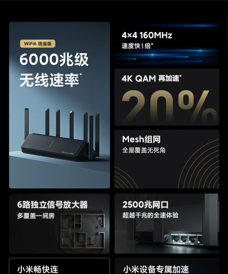【旗艦WiFi6】小米路由器AX6000WiFi6增強版家用千兆端口5G雙頻無線速率Mesh路由大戶型穿墻王全屋智能6000