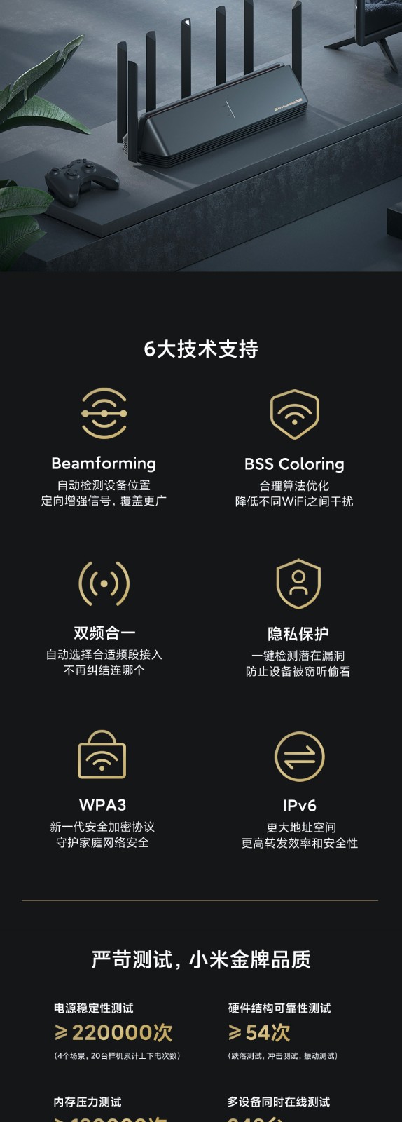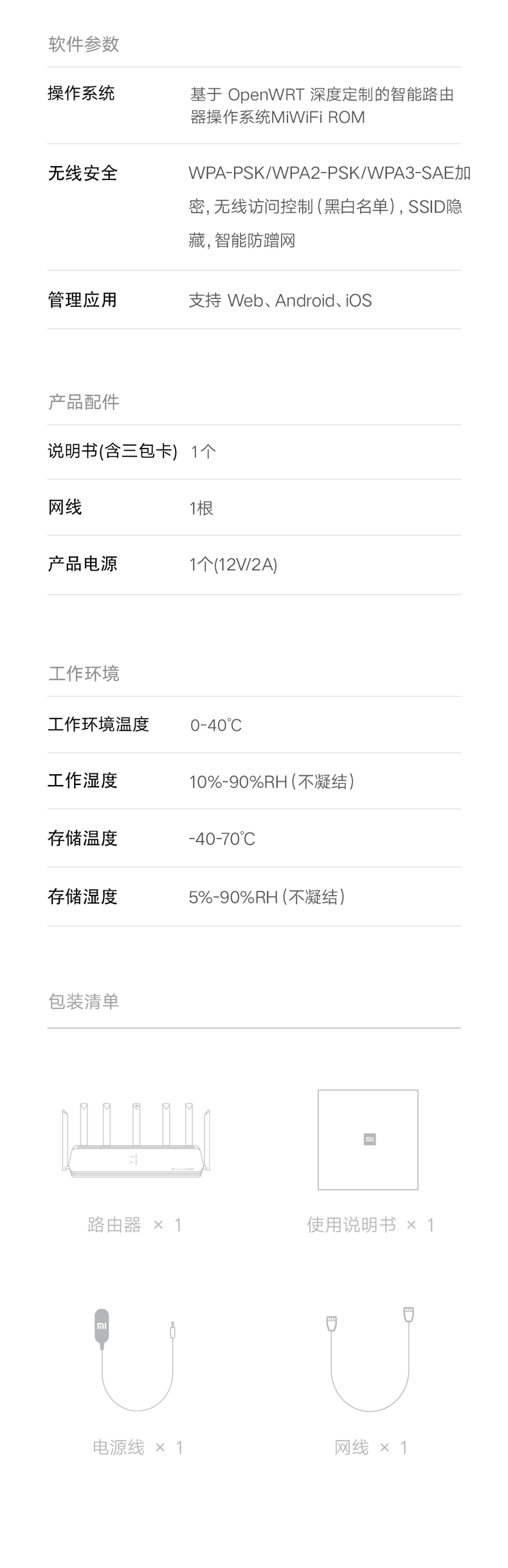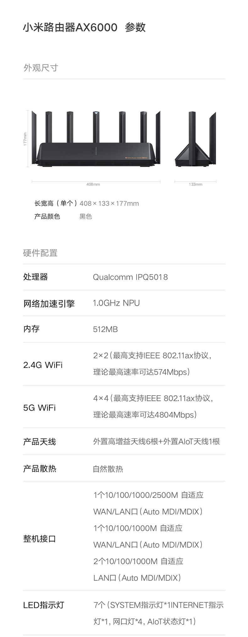 參數(shù) [品牌] 小米 [型號] 小米路由器AX9000家用千兆端口 [單位] 臺