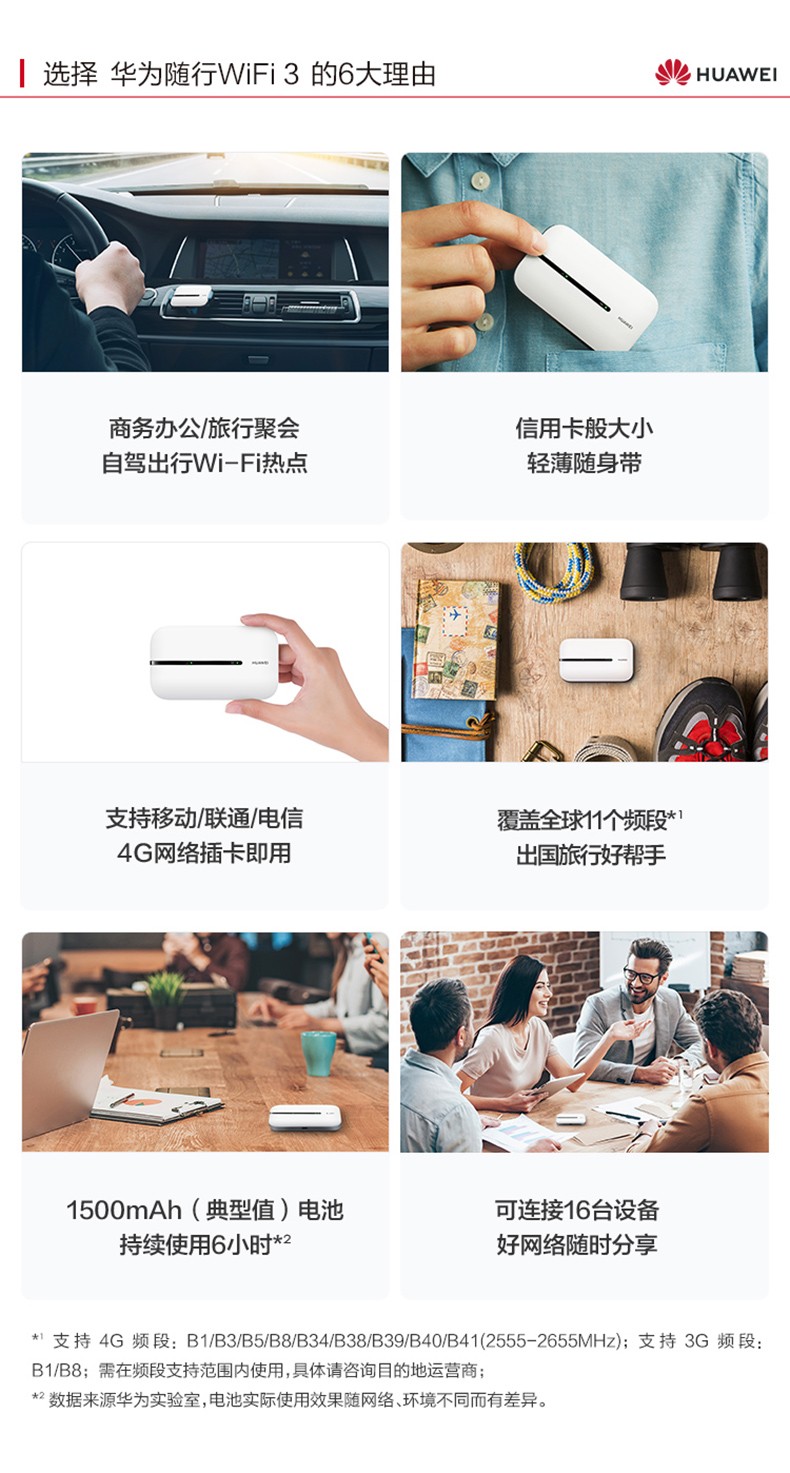 華為隨行WiFi3隨身無線WiFi4g插卡隨身WiFi便攜式移動WiFi車載無限流量神器隨身手機熱點全網(wǎng)通mifi[1011]