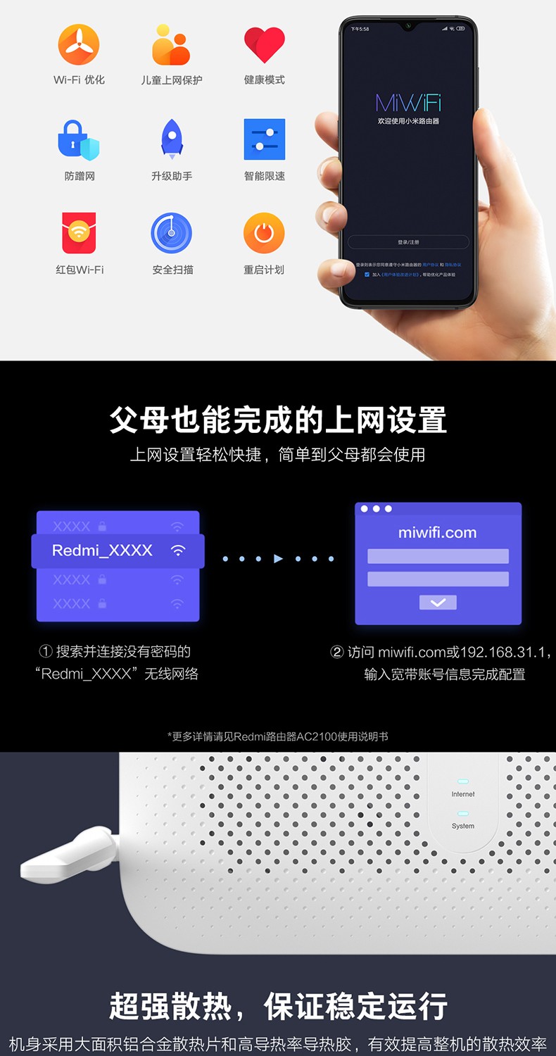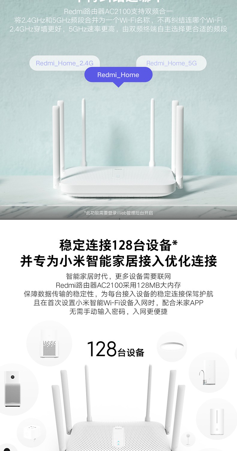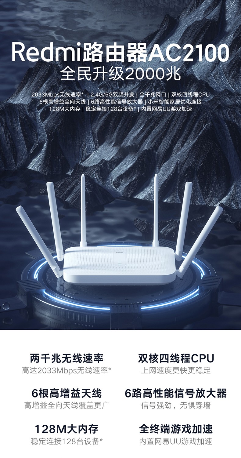 小米R(shí)edmi路由器AC2100家用千兆端口5G雙頻2000M無(wú)線速率wifi游戲加速會(huì)員高速大戶型