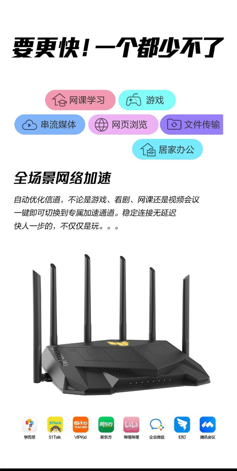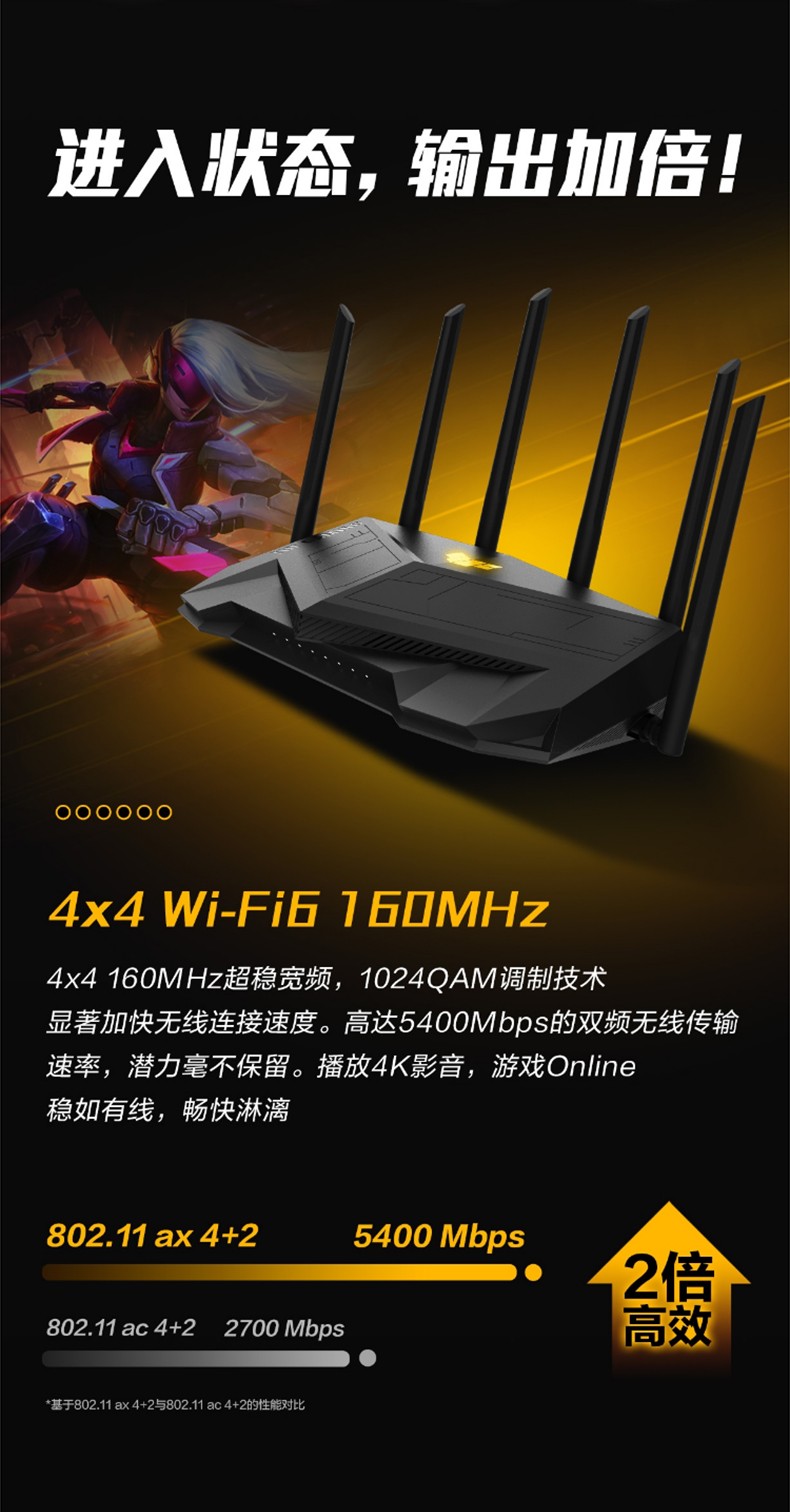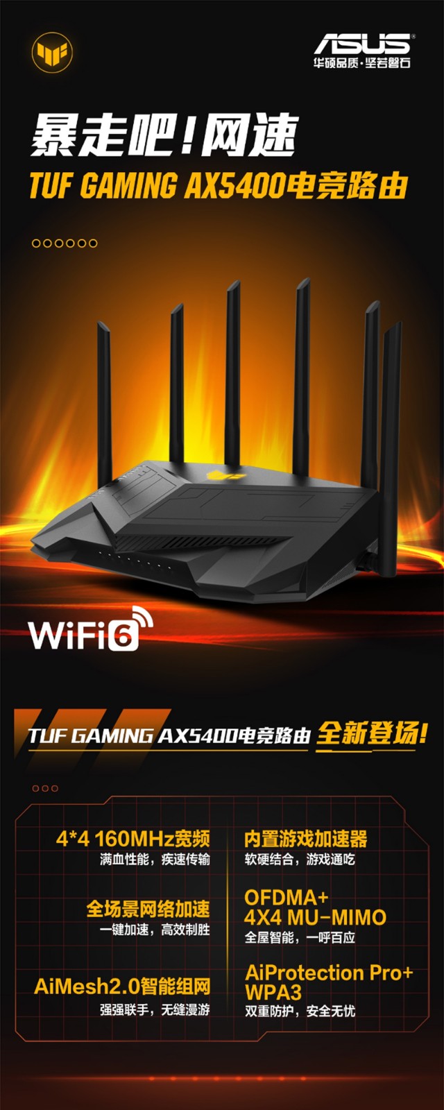 asus華碩TUFGAMINGAX5400穿墻王高速wifi6AX3000升級版雙頻無線千兆企業(yè)級wifi家用游戲加速端口路由器 千兆雙頻 單只裝