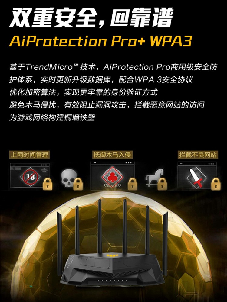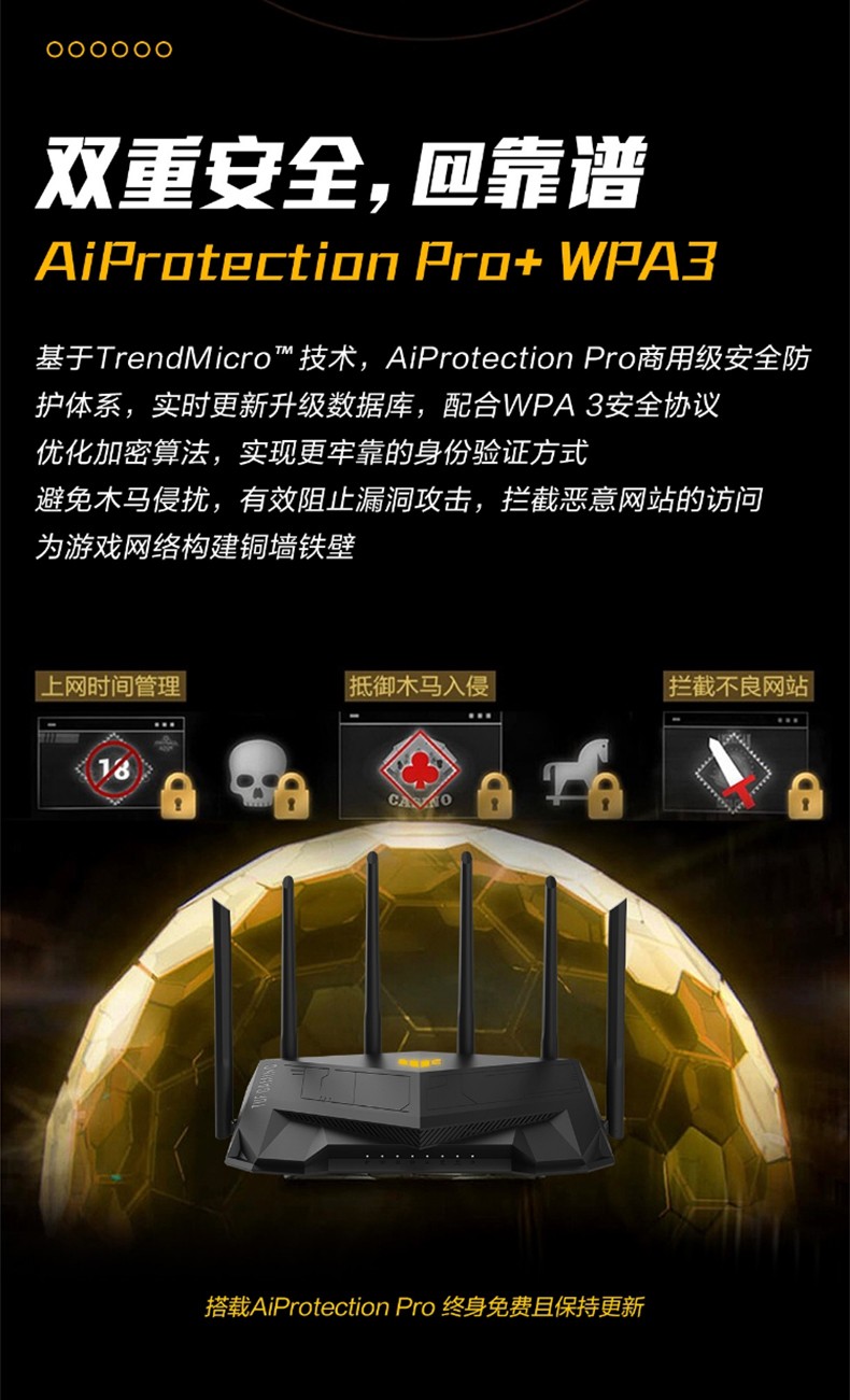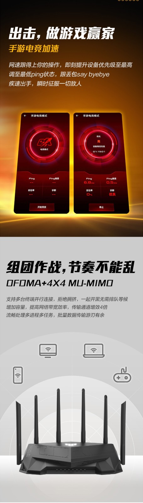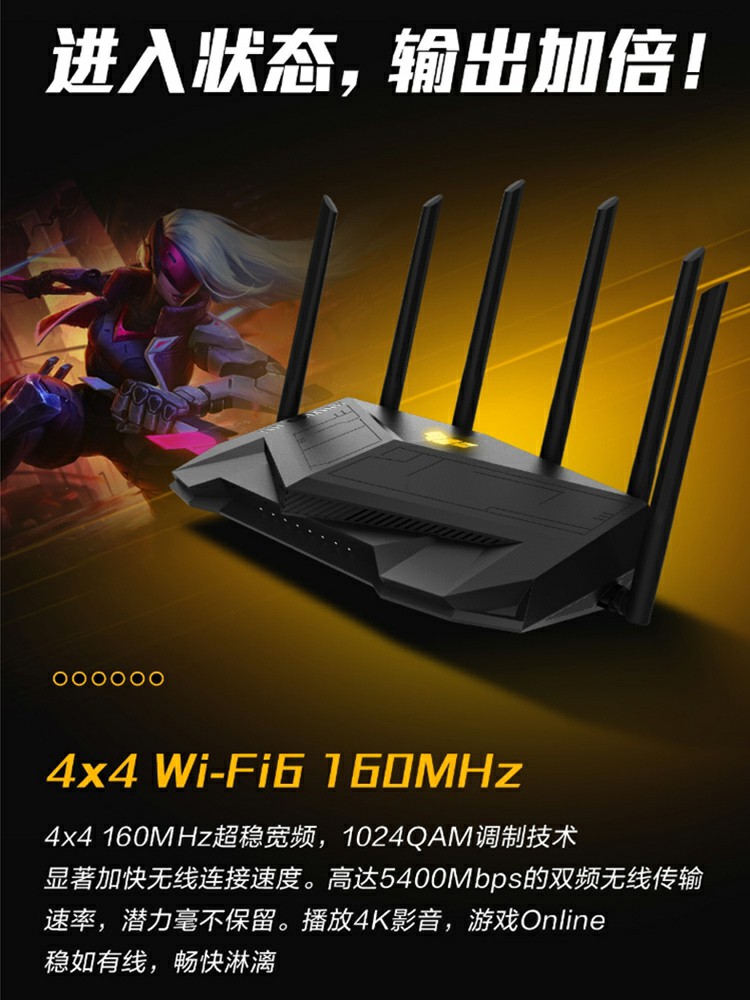 asus華碩TUFGAMINGAX5400穿墻王高速wifi6AX3000升級版雙頻無線千兆企業(yè)級wifi家用游戲加速端口路由器 千兆雙頻 單只裝